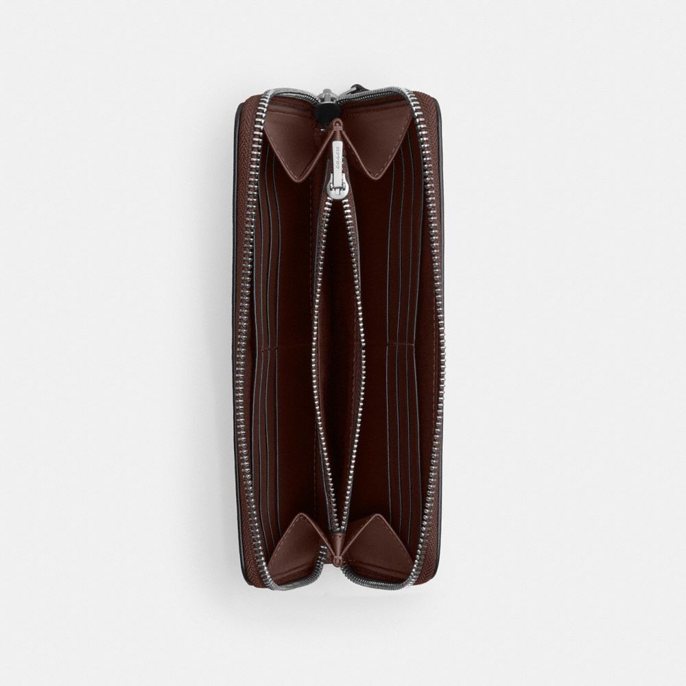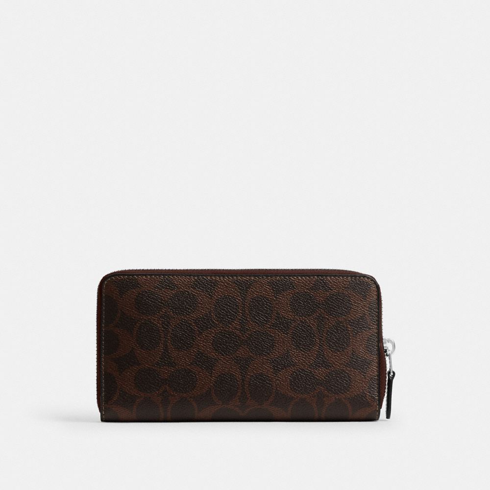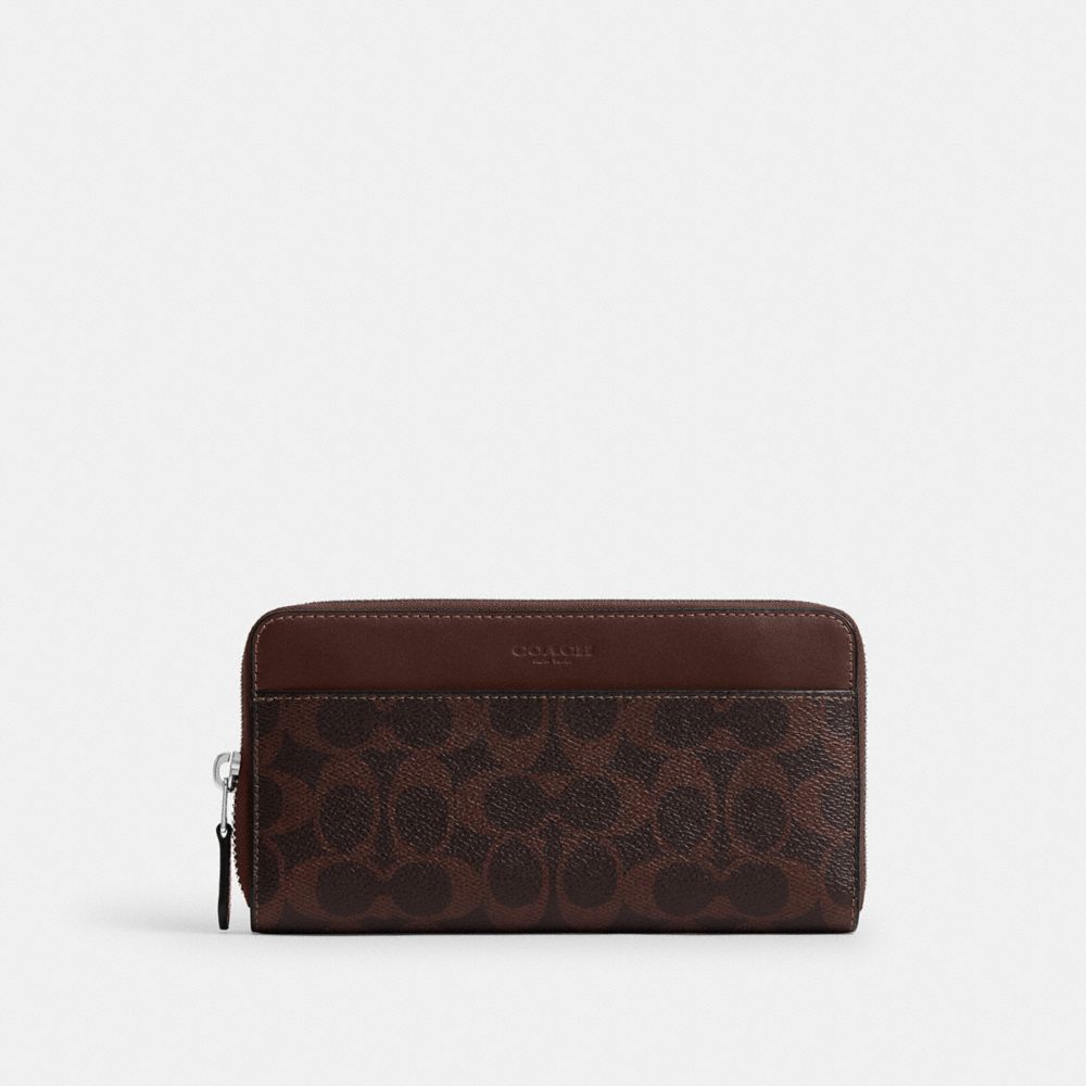 シグネチャー キャンバスとリファインド レザーで仕上げた、たっぷり入るジップアラウンド ウォレットで、カード、キャッシュ、コインの専用スペースがあります。ジップアラウンド開閉タイプで、iPhone Xまで収納できるサイズです。