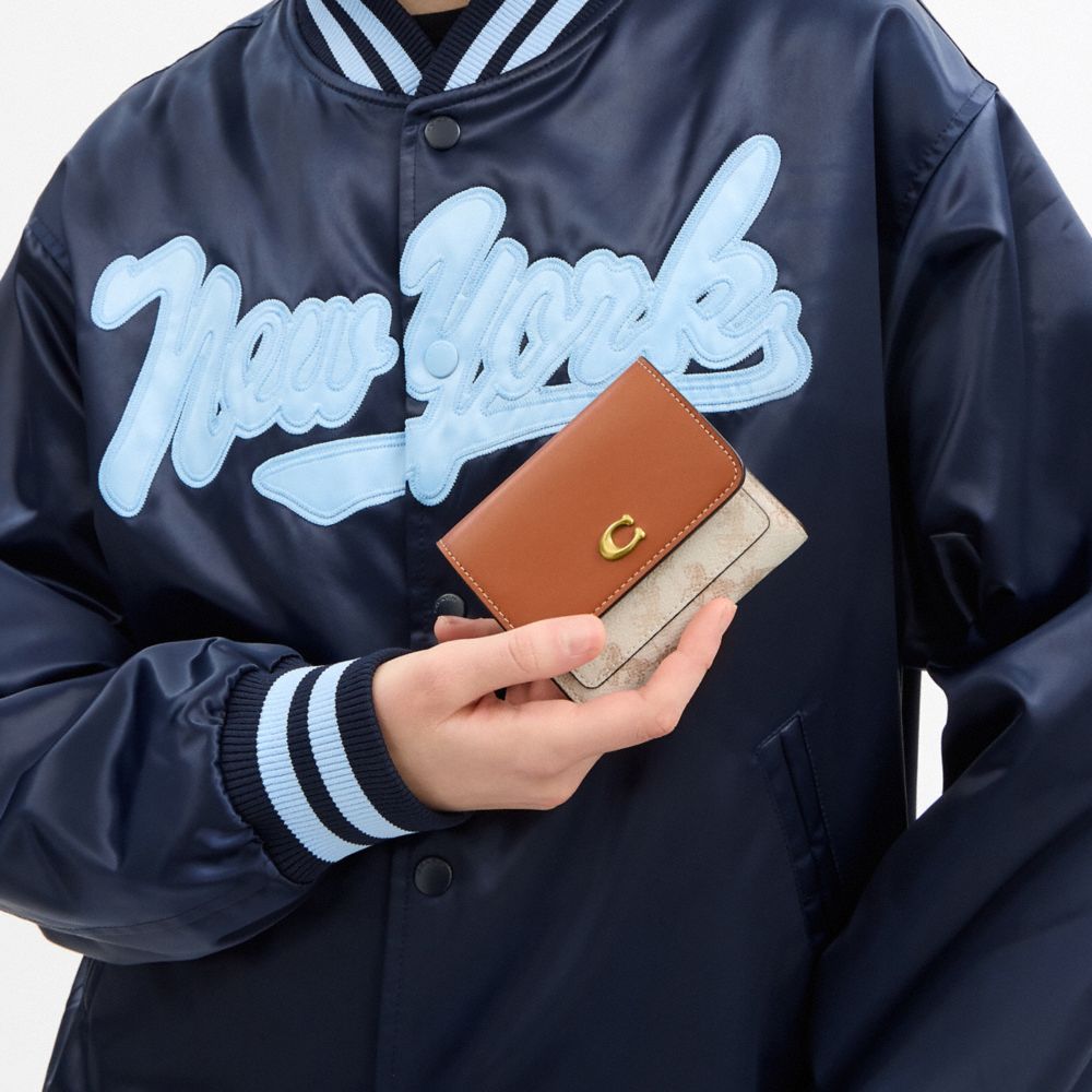 洗練された機能的なデザインが魅力のミラ。日常使いにぴったりな二つ折り財布です。プリンテッド コーテッド キャンバスとリファインド カーフ レザーで作り上げたコンパクトなスタイルに、コーチの“C”のハードウェアが目を引きます。