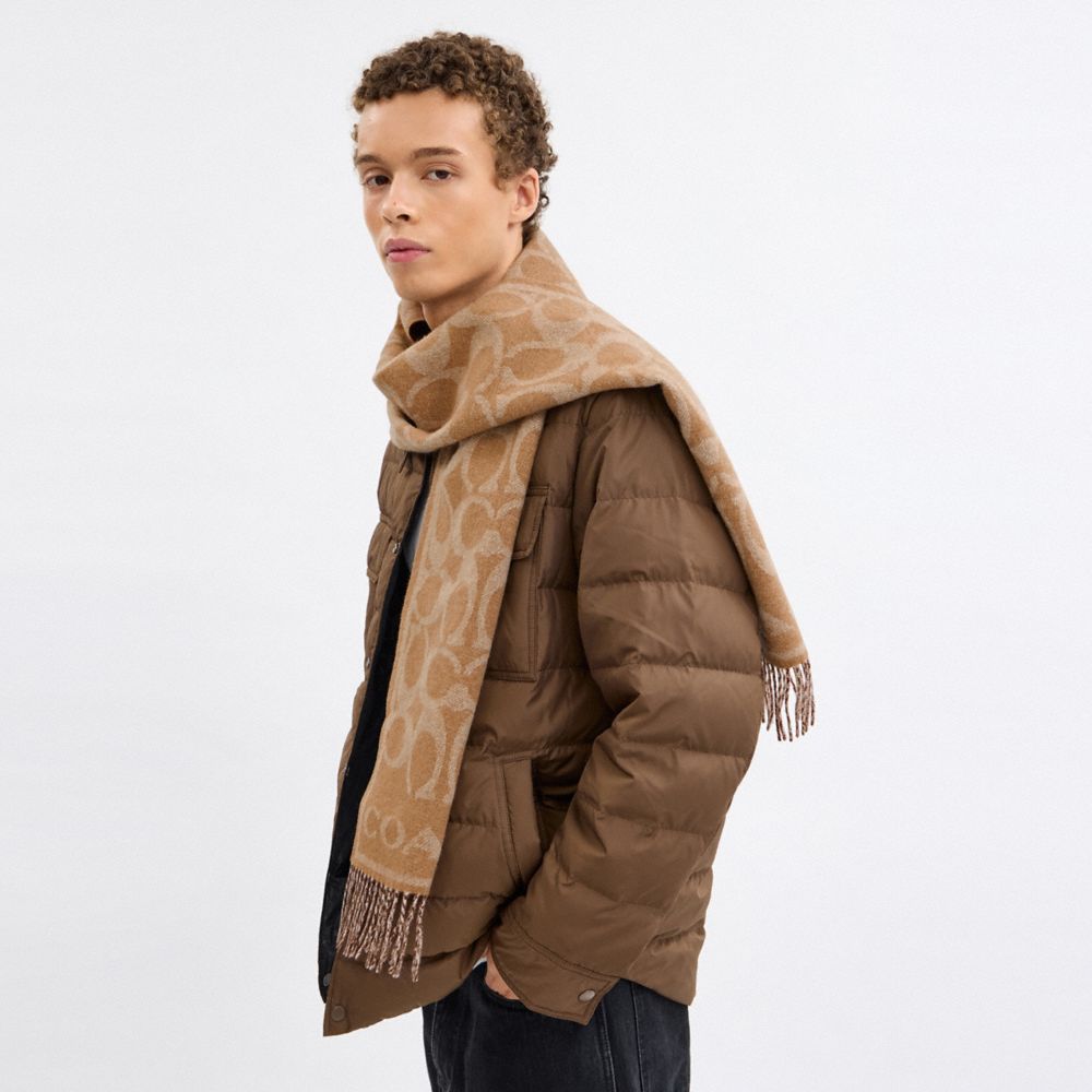 片面がシグネチャー パターン、もう片面が無地の柔らかいマフラー。ラグジュアリーなカシミヤ仕上げに、繊細なフリンジのトリムをあしらいました。