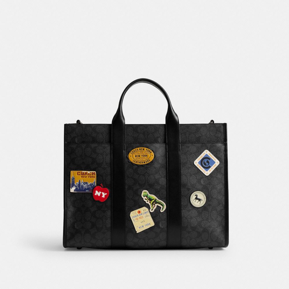 COACH®,ウェスリー トート・シグネチャー キャンバス・パッチ,トートバッグ,チャコール マルチ