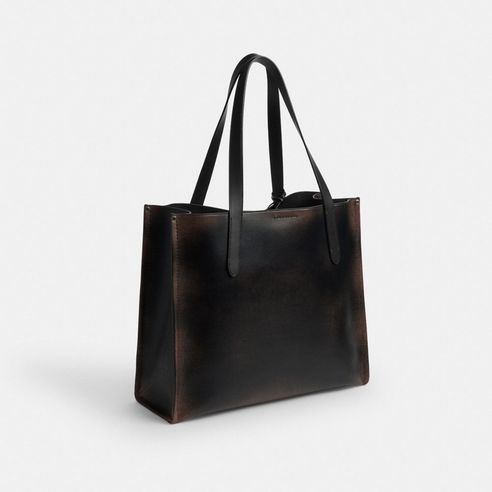 様々なシーンで活躍する“Relay(リレー)”トート。通勤&通学、休日のお出かけ、さらにはお稽古バッグとしても活躍する、A4サイズや最大16インチのノートパソコンが入るサイズ感。内ジップポケットは小物の収納に。ラブオフ加工を施して下地の色を浮かび上がらせた、使い込んだ風合いのバターのようにしっとりとしたグラブタン・レザーに、コーチ誕生の地であるニューヨークのグラフィックが映えます。