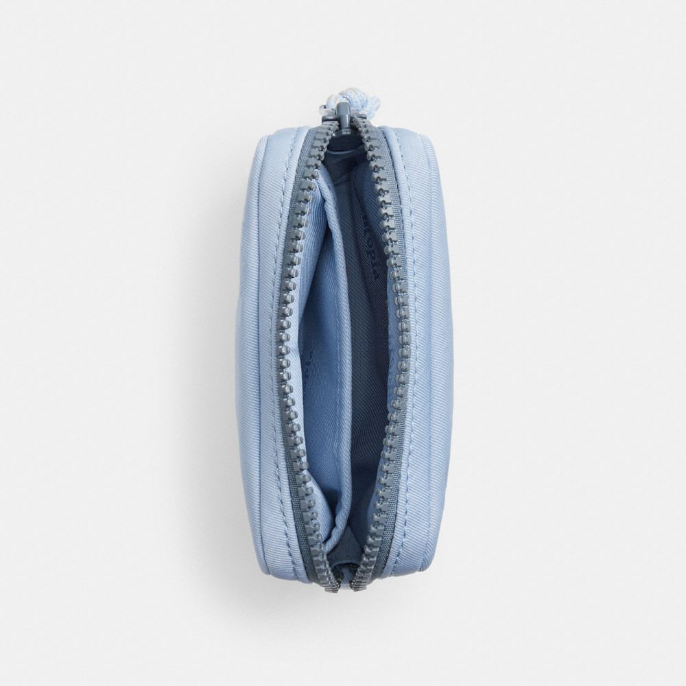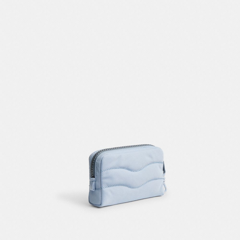 日本からのリクエストで実現した日本限定の軽量ポーチは、ふわふわが人気の定番シリーズのコンパクト版。カード、リップグロス、イヤフォンなど小さな必需品を収納するのにぴったりです。コード部分をのぞき100%リサイクルPETプラスチック(R-PET)製で、波打つような刺繍がアクセントに。ラウンドジップタイプで中身を出し入れしやすく、コーチトピアの楽しげなパッチが特徴的です。