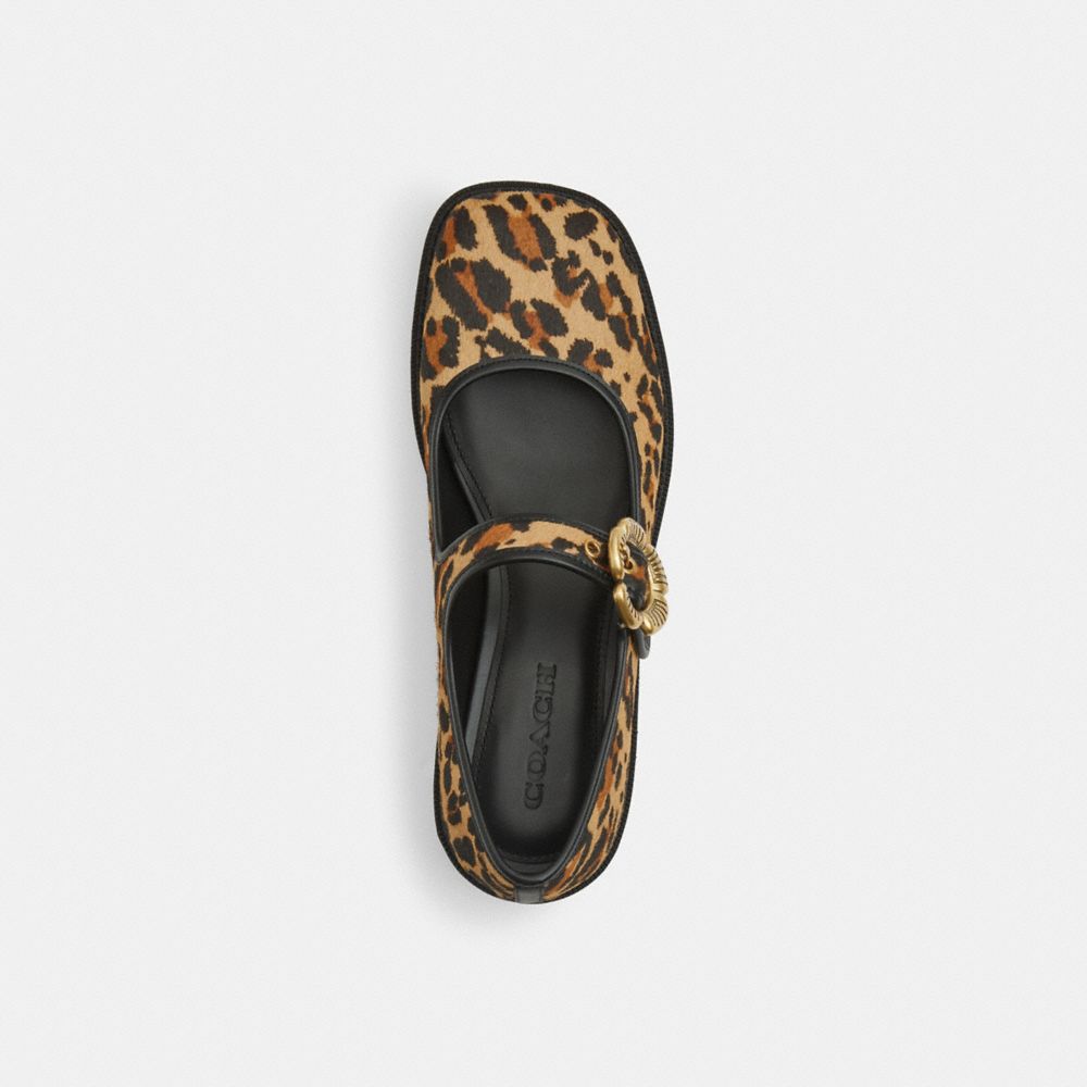 コーチの大胆なレオパード柄プリントとスムース レザーが目を引きます。ティーローズのバックルがフェミニンな雰囲気を添えます。パッド入りの中敷きで一日中快適な履き心地です。