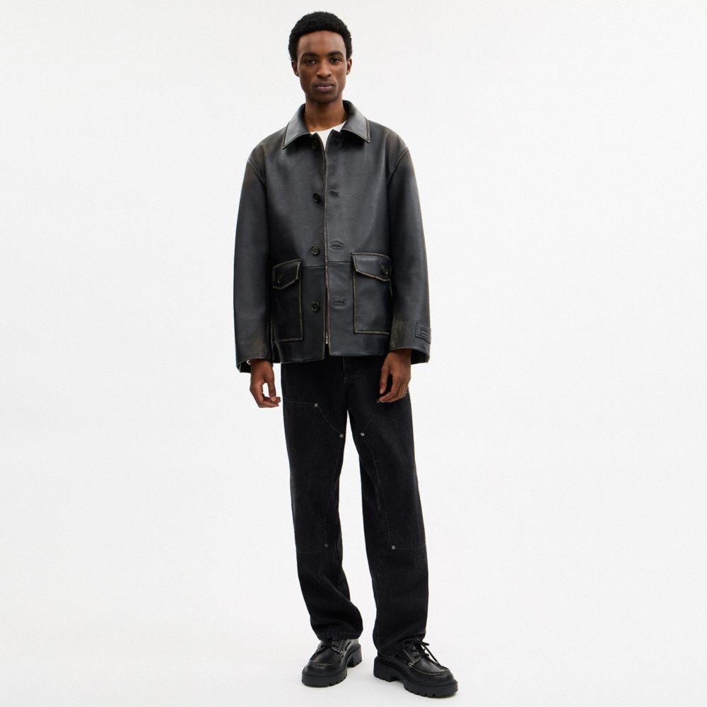 実用的なスタイルを高めた、リッチなレザーのシャツジャケット。手作業でディストレス加工を施して、使い込んだような風合いに仕上げました。