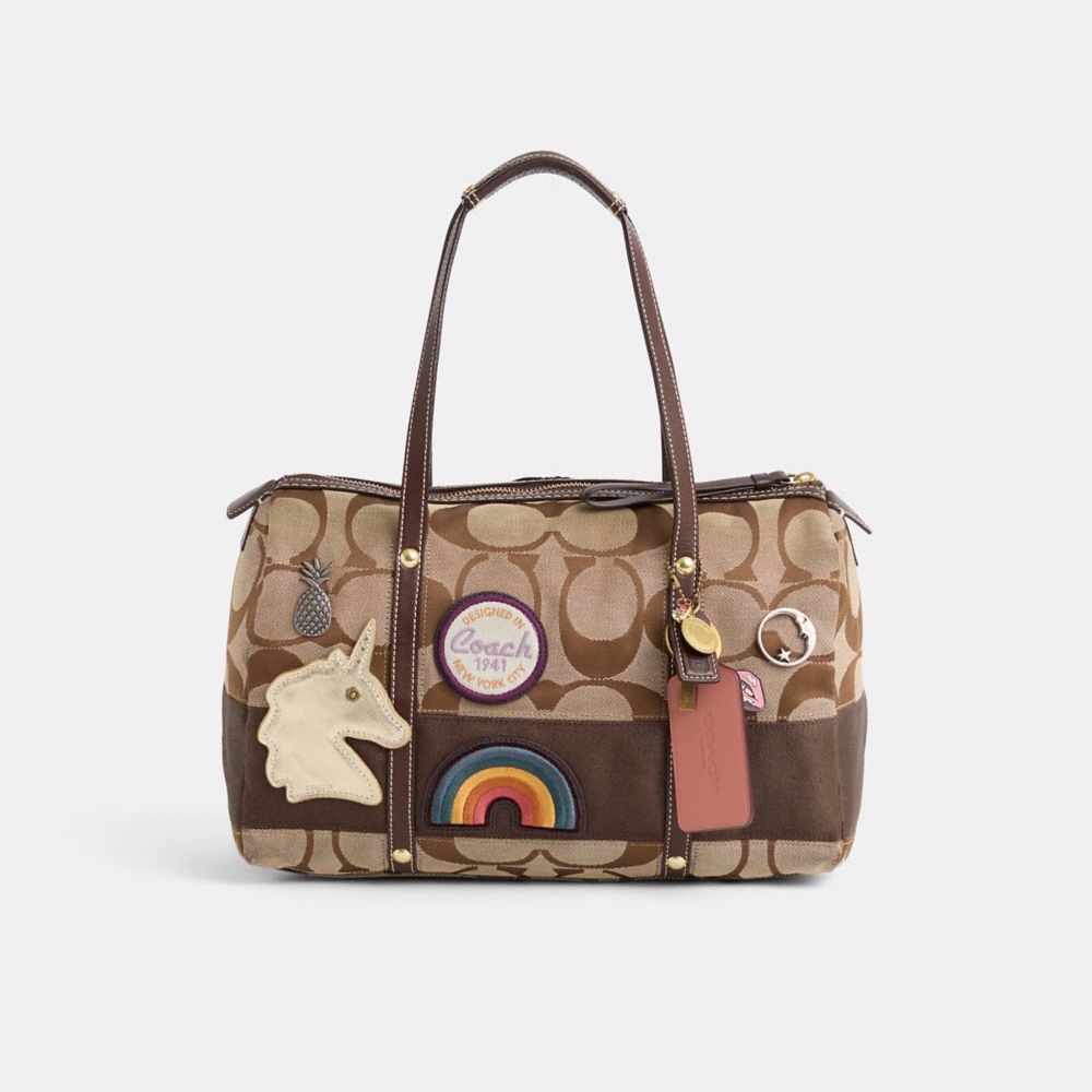 丁寧なクリーニング、コンディショニング、リストア(丁寧なケアと修復作業)を経て、コーチのパッチとピンを散りばめた、遊び心あるスポーティなヴァーシティスタイルに、装いも新たにローズ・オリヴァによってリデザイン。コーチの熟練職人フェルナンド・グティエレス、ミシェル・バルケが、バッグの前後に多彩なモチーフを丁寧に飾り付け、ジッパーを磨き、リパーパス素材のチャームを添えました。