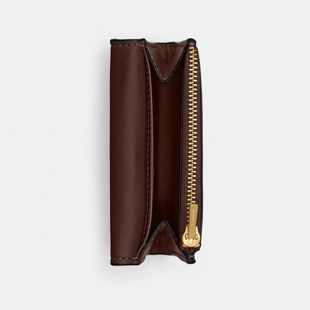 財布代わりにもなる、リファインド カーフ レザーのコンパクトなフラップ カードケース。カード、キャッシュ、IDなどを収納可能で、内側にはジップ付き小銭入れを備えています。外側のスリップ ポケットには必需品を出し入れしやすく収納できます。コーチの“C”のハードウェアがアクセント。