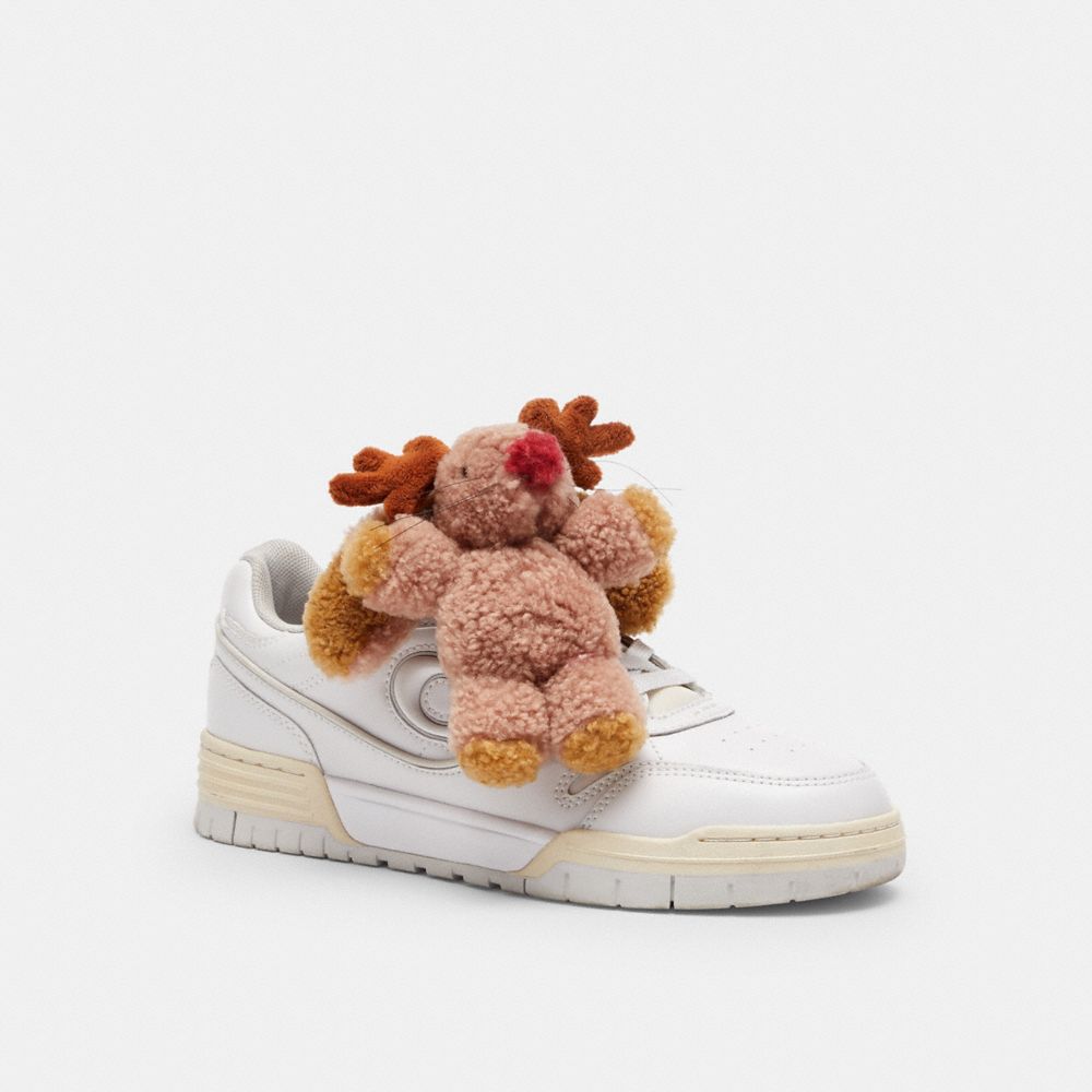 遊び心あふれるバニーぬいぐるみ「フロッピー」が、トナカイの角と赤い鼻でホリデー気分にドレスアップ。やわらかなシアリングとグラブタン・レザーで仕立てた、愛着あるぬいぐるみに着想を得たシュー チャームです。