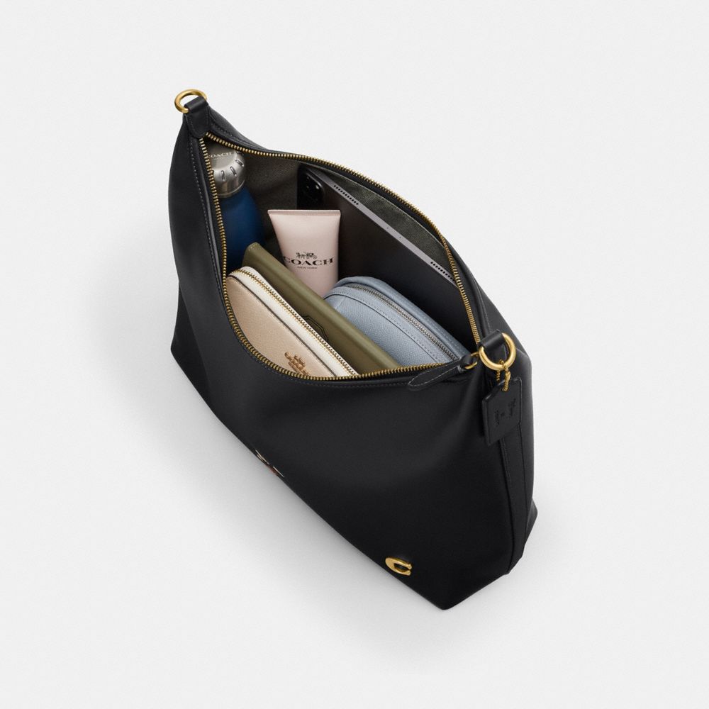 タイムレスなスタイルにひねりを加えたジュリエット。くったりとした風合いの洗練されたシルエットに、コーチの“C”のハードウェアが目を引きます。バターのようにしっとりとしたグラブタン・レザーで作り上げたバッグの正面に、お得意のポーズを決めるミッキーマウスをあしらいました。
