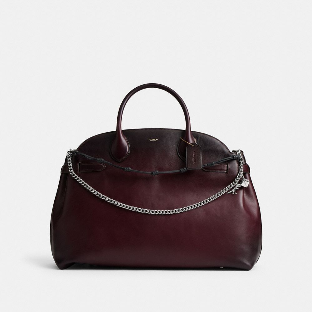 レザーとチェーンを重ねた、用途の広いストラップ チャームです。レザーとチェーンを重ねたデザインに、遊び心あふれるコーチのアイコンを添えました。