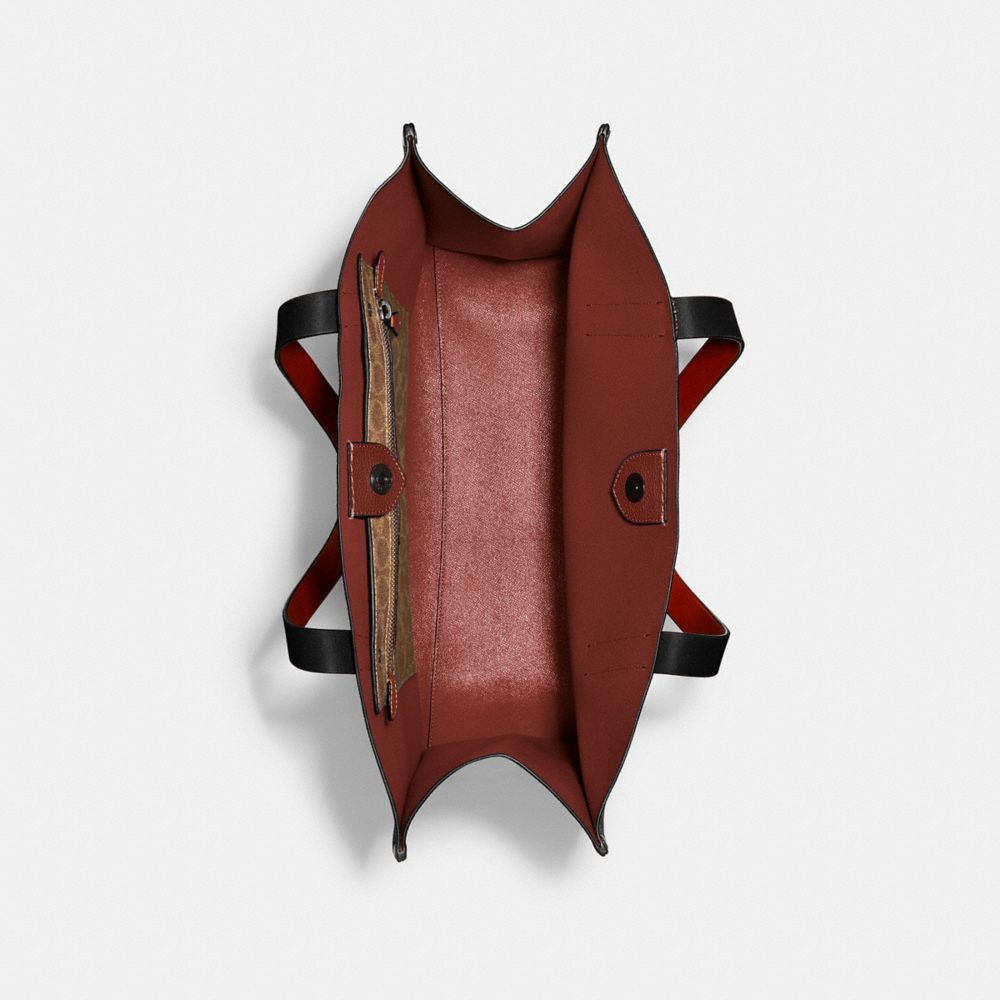 A4サイズや最大16インチのノートパソコンが収納可能。コントラストを効かせたシグネチャー キャンバスの内ジップポケットは小物の収納に。マグネットスナップ開閉で中身をしっかり守ります。荷物を入れても底部がへこみづらい機能美も魅力。
