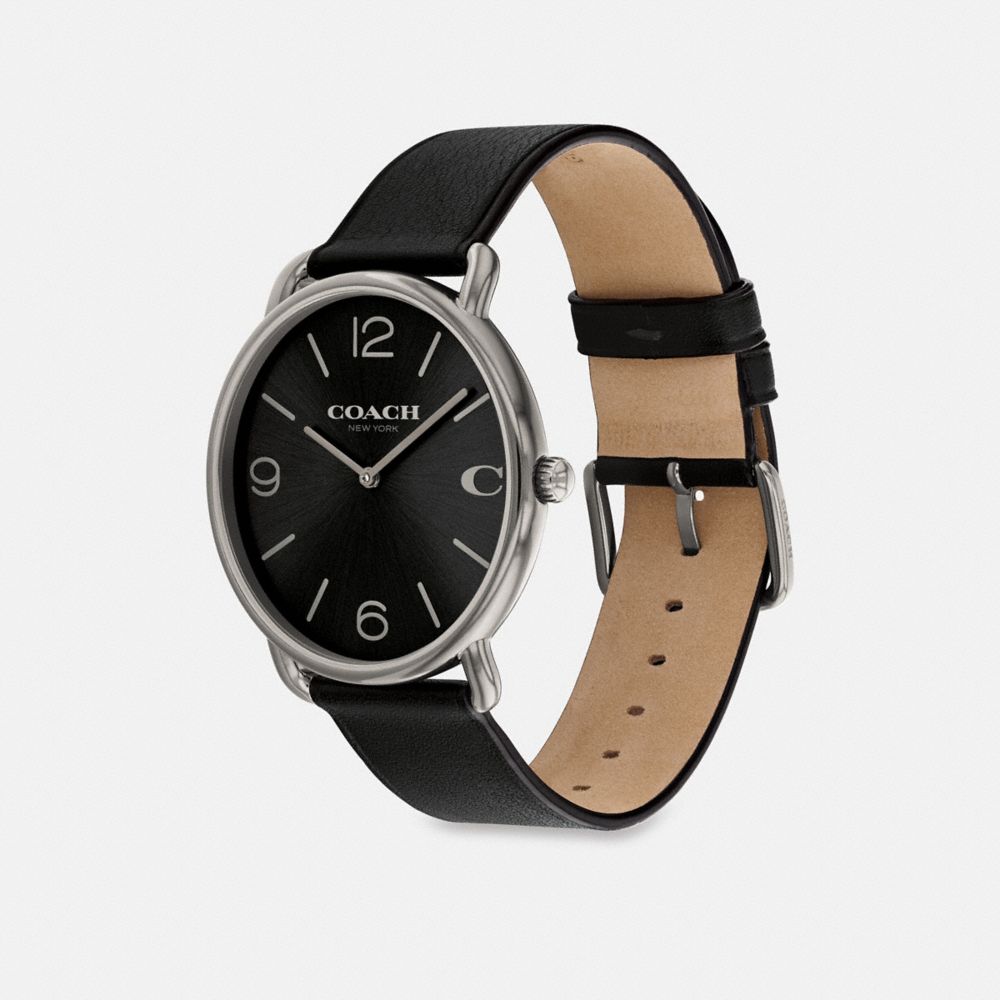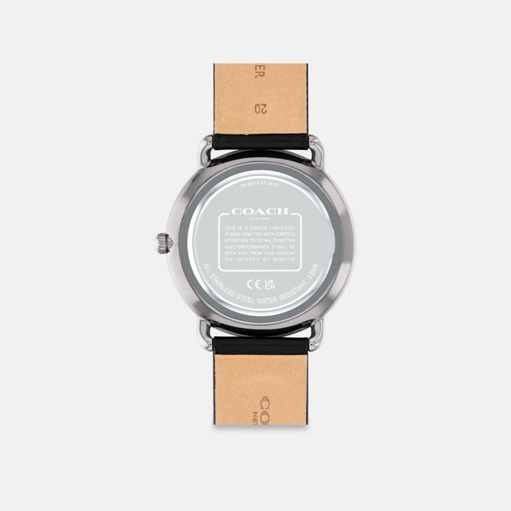 すっきりとしたラインと、モダンかつミニマルな感性が際立つエリオット。平日から休日まで活躍してくれる、まさに万能デザインのクラシックな腕時計です。イオンプレーティングを施したラウンドケースに、レザーストラップを合わせました。文字盤には数字とスティックマーカーを組み合わせ、3時の位置のシグネチャー“C”の日付ウィンドウがアクセントを添えます。