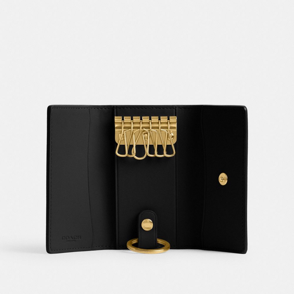 ポリッシュド ペブル レザーで仕上げた、6連式のキーケース。頻繁に使うキーだけ取り付けたり、厚みのあるキーを付属のキーリングに取り付けて収納可能です。