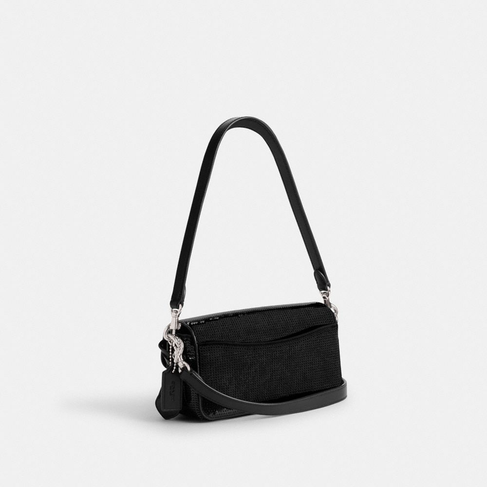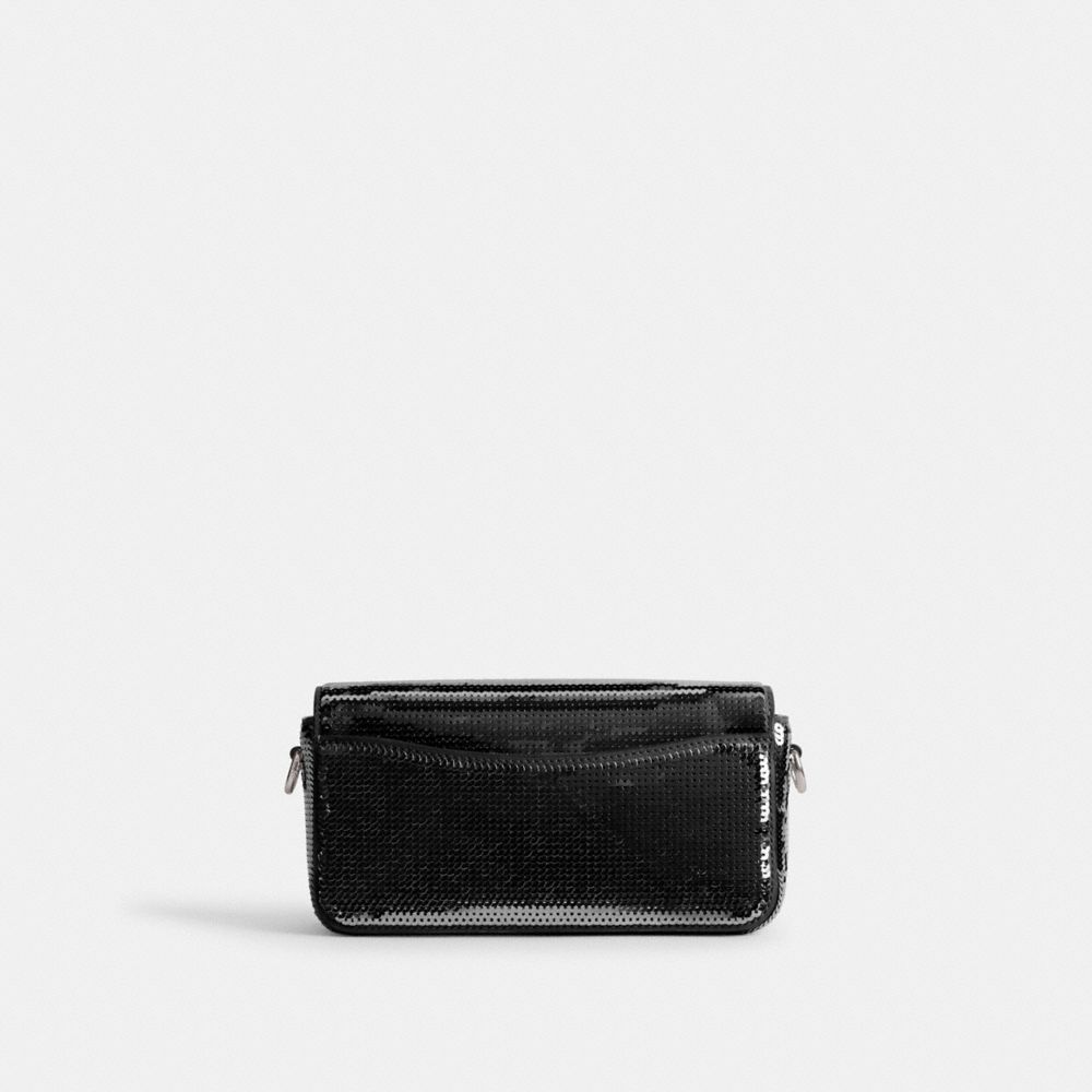 コーチのデザインスタジオ生まれのアーカイブのクラスプをモダンにアレンジした、コーチの“C”ロゴのプッシュロックが目を引くストゥディオ。リファインド レザーで作り上げたバッグの全体に散りばめたスパンコールが、遊び心あふれる煌めきを放ちます。