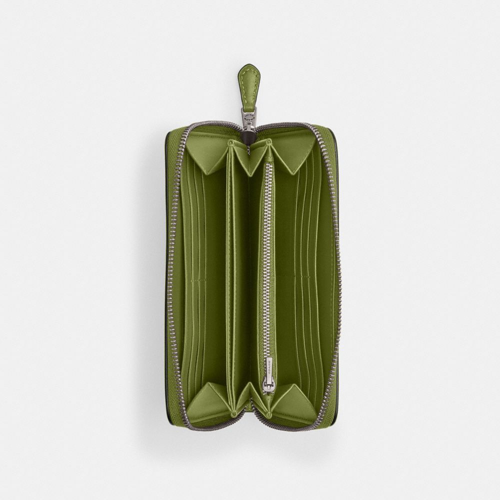 リファインド カーフ レザーにコーチの“C”のハードウェアをあしらった長財布。開くとゆとりあるインテリアが広がるジップアラウンド開閉式です。