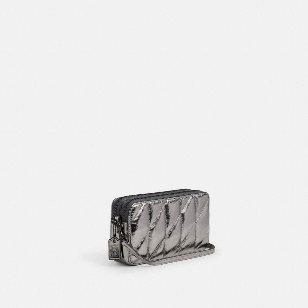 トータルで何役もこなす理想的なサイズ感のキラ。斜め掛け、リストレット、クラッチ、大きめのバッグのポーチとして活躍します。柔らかいキルティング加工を施したメタリックな光沢のあるテクスチャード レザーに、コーチの“C”のハードウェアをあしらいました。
