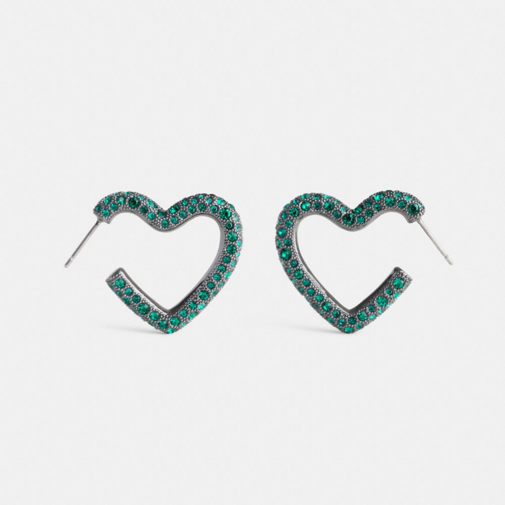 パヴェ クリスタルが煌めきを放つ、愛らしいハートのフープピアス。チタン製ポストに、着脱しやすいラウンド型キャッチを採用したポスト&キャッチ式です。