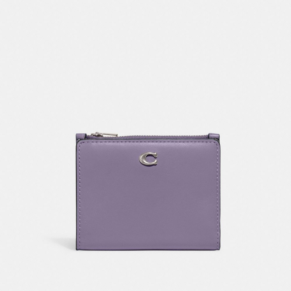 二つ折りに閉じた状態で小銭が出し入れできる、手のひらサイズの薄い財布。リファインド カーフ レザーで仕立てました。スナップを外すと、キャッシュレス派に嬉しい6つのカードポケットと札入れが広がり、すっきり収納できます。