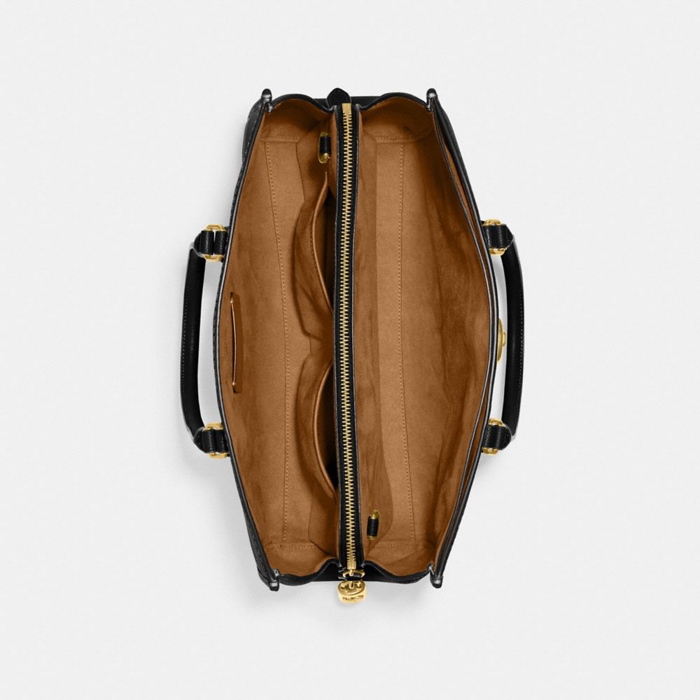 モダンクラシックなブルック キャリーオール。通勤&通学に活躍する実用性を備えたデザインに、コーチのアイコニックなターンロック開閉がアクセントを添えます。ポリッシュド ペブル レザーで仕上げました。