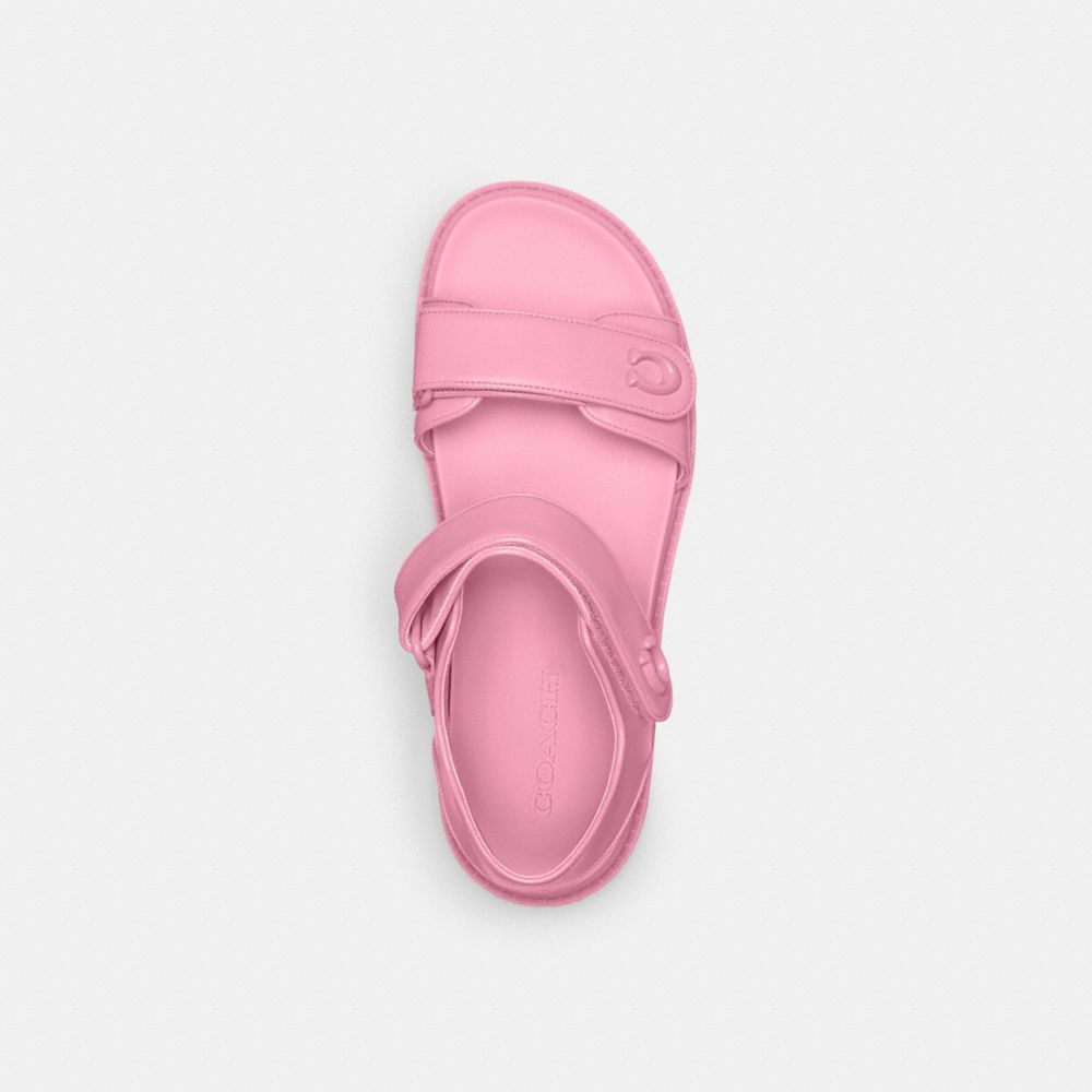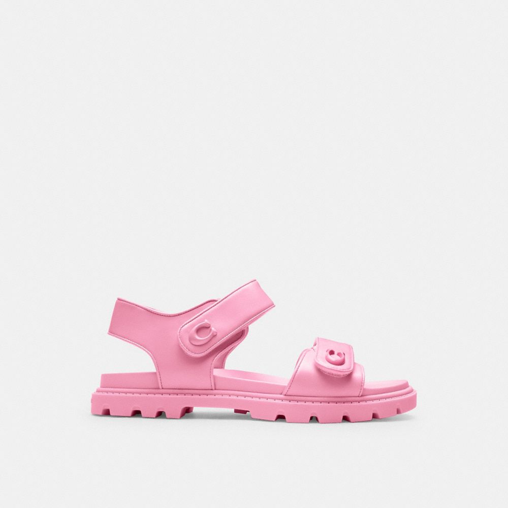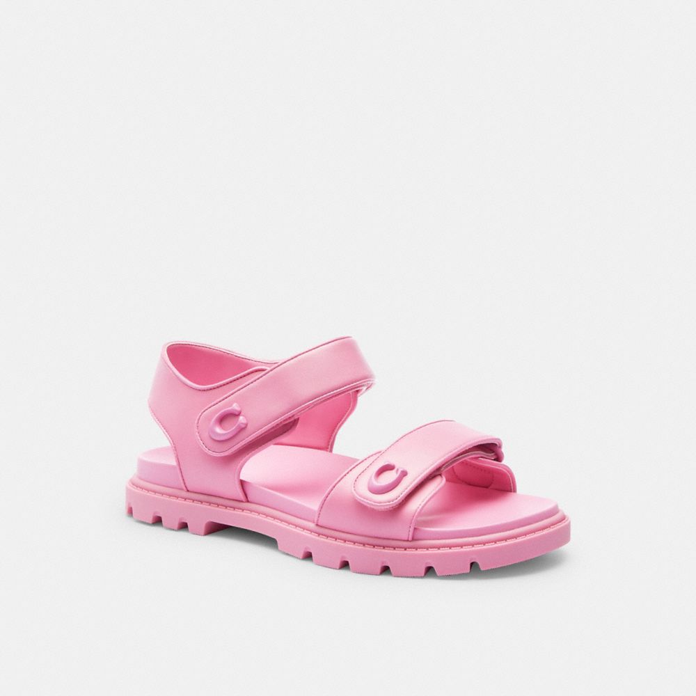 くつろぎ感あふれるスポーティなデザインの、ダブルストラップのブリン サンダル。パッド入りの快適な中敷き、軽量のEVAソール、調節可能なベルクロを備え、オンオフ問わず快適な履き心地。コーチの“C”がクラシックな雰囲気を添えます。