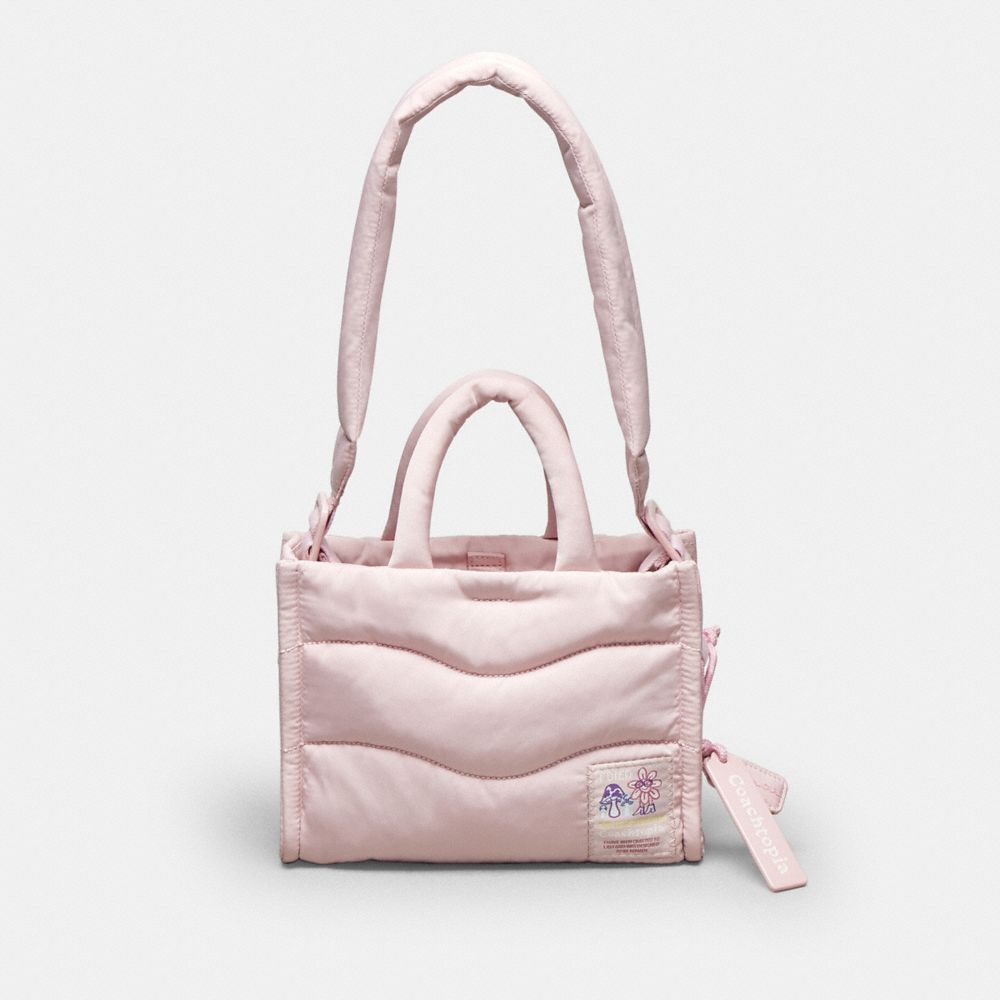 コーチトピア ループ ミニ トートはシェルと裏地に100%リサイクルPETプラスチック(R-PET)を使用した、ふわふわが人気のトートバッグのコンパクト版。コーチトピアのトレードマークである楽しげなパッチと長さ調整可能なストラップを備え、スマートフォンや鍵、長財布などの必需品を持ち運ぶのにぴったり。