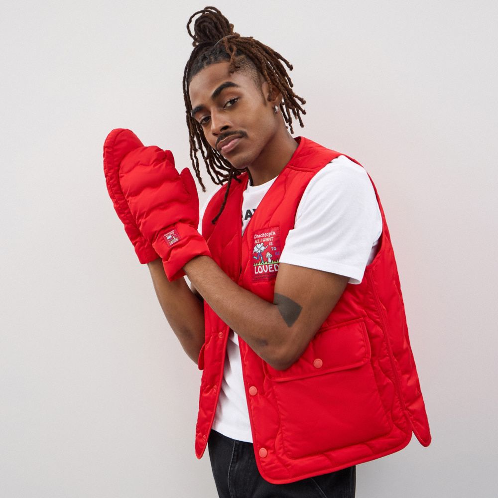 冬の寒さを乗り切るには、このあたたかいキルティングミトンがぴったり。波打つような雲モチーフの刺繍が施され、素材は100%リサイクル ポリエステル製。仕上げに、コーチトピアならではの楽しげなパッチを飾って。