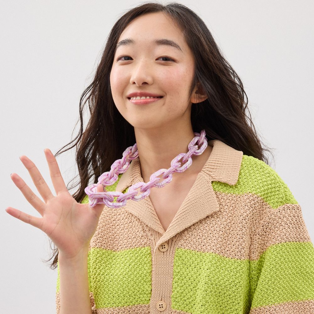 私たちコーチトピアのチェーン ストラップは、取り外し可能なハードウェアを採用することで、交換しやすいように設計されています。そのうえチェーン部分は再生アクリルを70%以上使用してつくり上げたプラスチック製で、ほかにはないマルチカラーの彩りが魅力的。