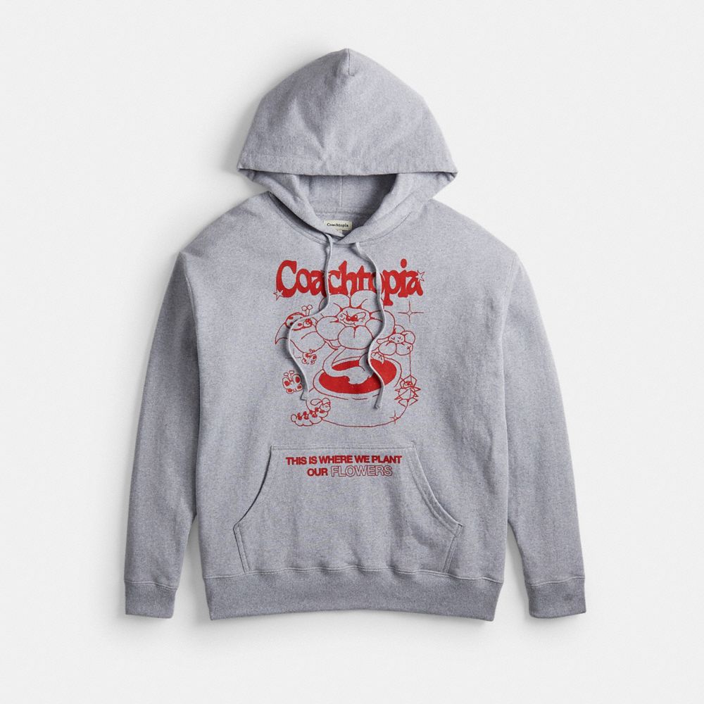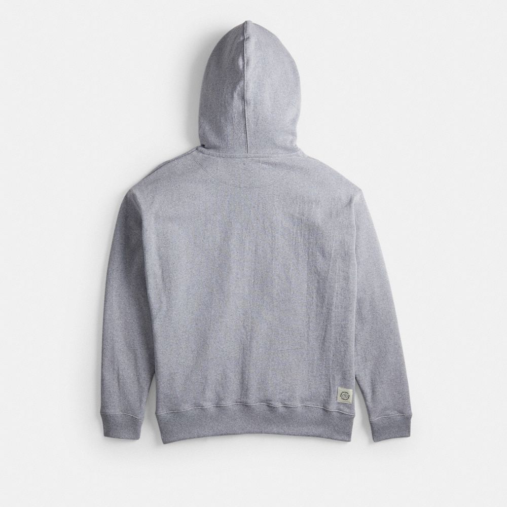 着心地のよいコーチトピア フーディーは、プレコンシューマ(消費者の手にわたる前の製造工程で生じた廃棄物)の繊維くずを94%以上再生利用したリサイクル コットン製。リラックス感のあるクラシックフィットで仕立て、シーズンレスにオールジェンダーなスタイルにマッチします。