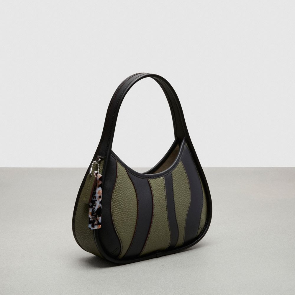 このバージョンは、コーチのレザーグッズの製造工程で生じてしまった不規則なレザーのはぎれを重ね合わせ、コラージュすることで生まれた革新的な素材、ウェイビー ストライプ アップクラフト レザーを使用。この素材の詳細と環境への影響については、“本製品のカーボンと廃棄物へのインパクト”をご覧ください。
