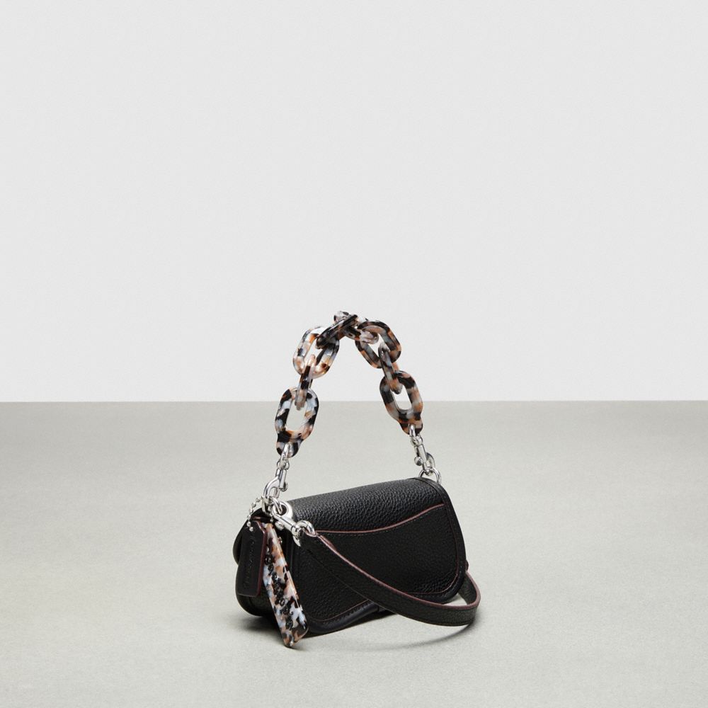 リサイクル素材を部分的に再生利用してつくり上げたレジン製のチェーンストラップを使えばハンド バッグとして、長めのレザーストラップを使えばクロスボディとして2WAYでお楽しみいただけます。