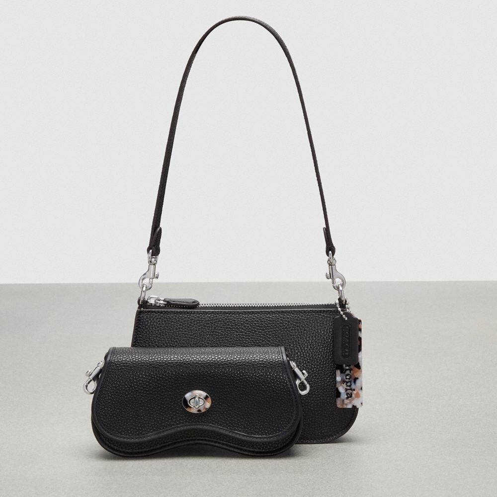 ペブル Coachtopiaレザーで仕立てた収納力のあるポーチセット。大きめの横長シルエットのポーチは間口に使い勝手のよいジッパーを備え、小さめの取り外し可能なポーチにはターンロック開閉と内側のカードフォルダーを採用。それぞれ単体としてはもちろん、2つのポーチをまとめて使えば3WAY仕様でお楽しみいただけます。