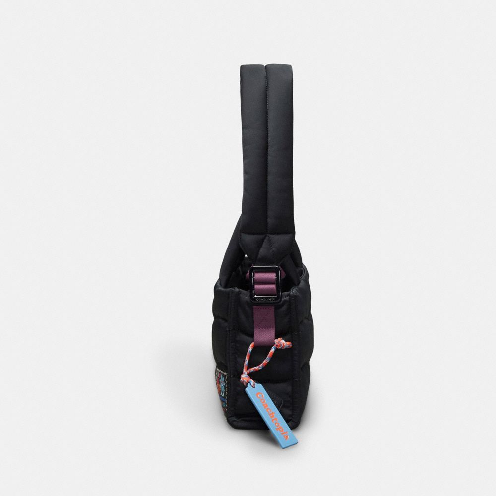 コーチトピア ループ ミニ トートはシェルと裏地に100%リサイクルPETプラスチック(R-PET)を使用した、ふわふわが人気のトートバッグのコンパクト版。コーチトピアのトレードマークである楽しげなパッチと長さ調整可能なストラップを備え、スマートフォンや鍵、長財布などの必需品を持ち運ぶのにぴったり。