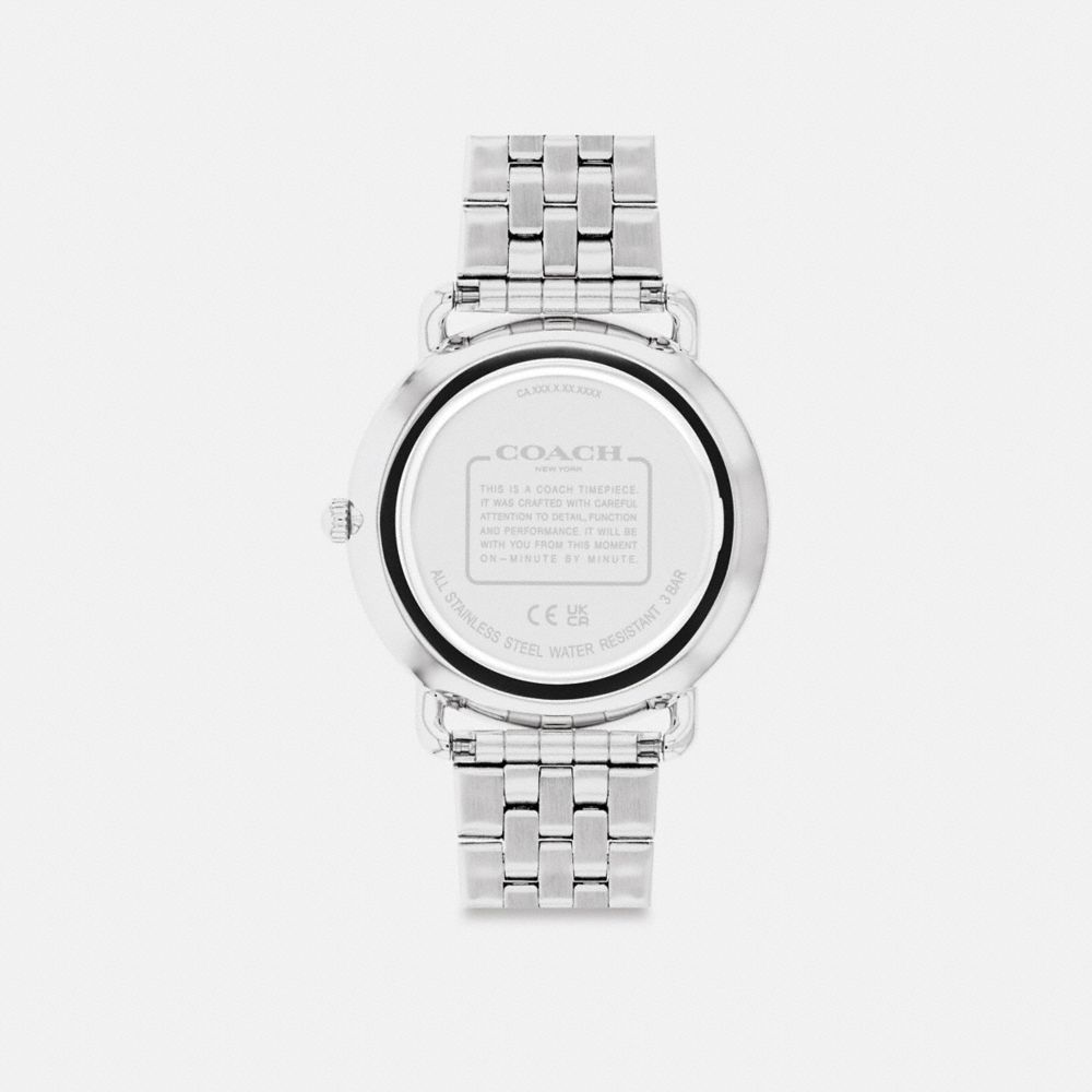 すっきりとしたラインと、モダンかつミニマルな感性が際立つエリオット。平日から休日まで活躍してくれる、まさに万能デザインのクラシックな腕時計です。すっきりとしたステンレススチールのブレスレットを合わせ、3時に位置するコーチの“C”の日付ウィンドウがアクセントを添えます。