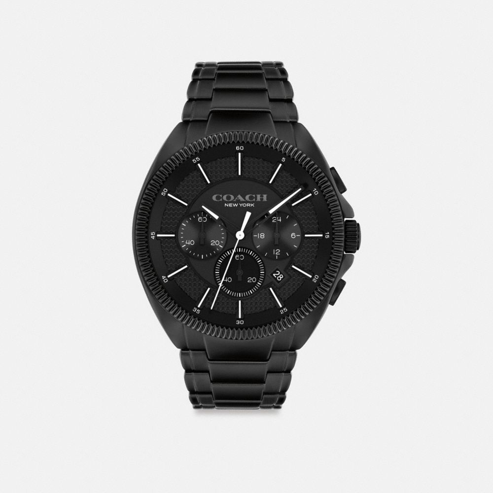 こだわりのスタイルと堅牢な機能性を兼ね備えたジャクソン。移動が多い方に最適なデザインです。ブラックの文字盤に日付ウィンドウと3つのサブダイヤル(秒、分、時間)をあしらった、イオンプレーティングのクロノグラフです。