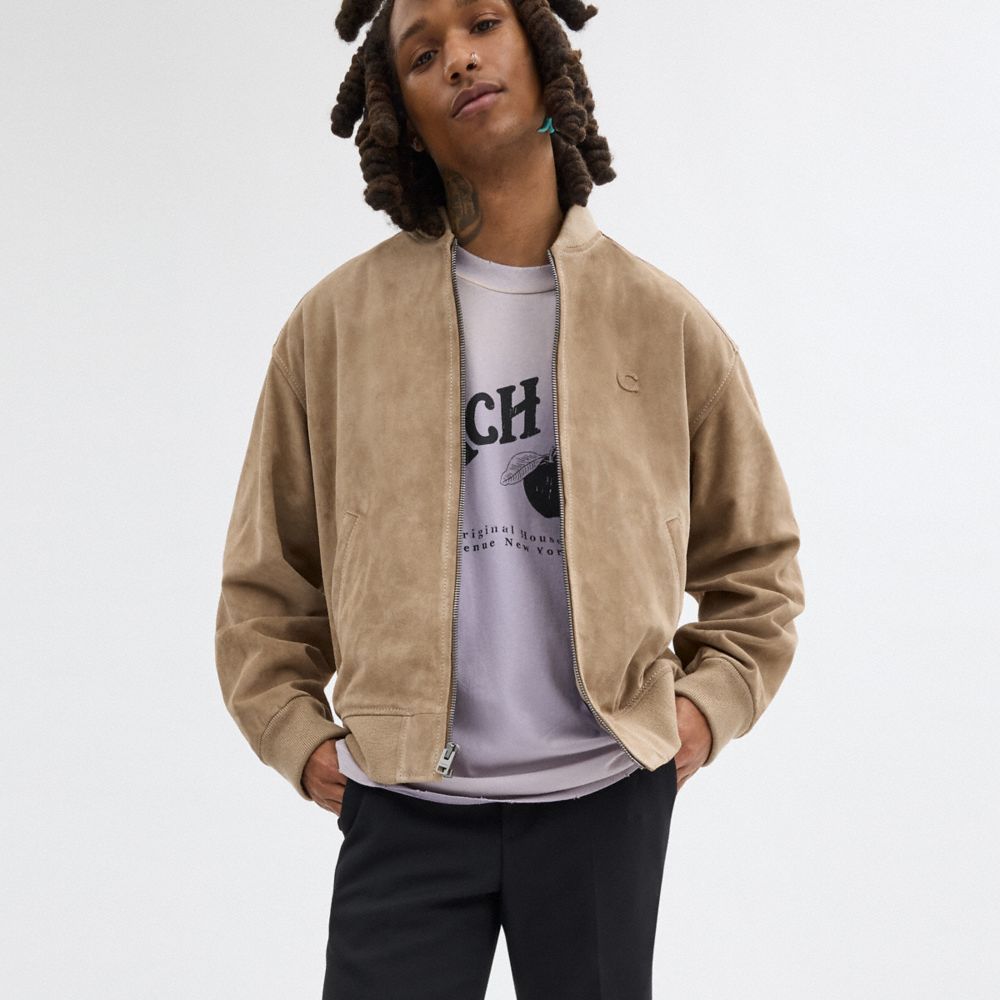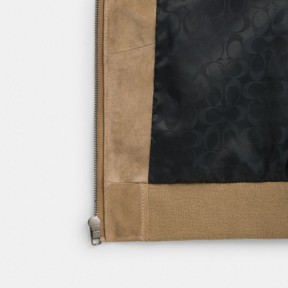 クラシックなアメリカンスポーツウェアとヴィンテージなボンバージャケットの要素を併せ持つジャケット。とても柔らかいスエードで仕立てた、心地よいリラックスフィットのデザインです。ジップフロントのスタイルに、同系色のシグネチャー パターンの裏地がクラシックな雰囲気を添えます。