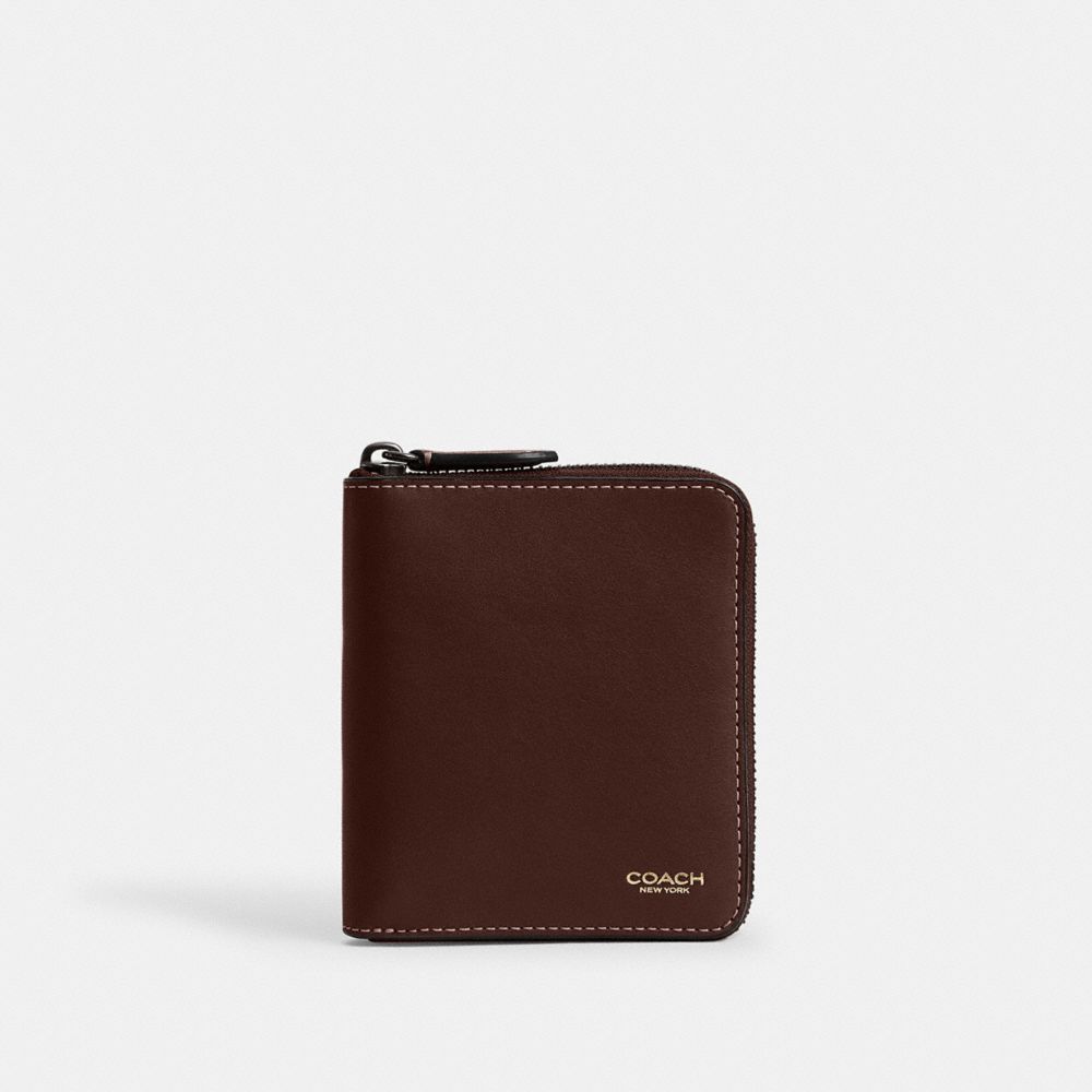 コンパクトなのに小銭を出し入れしやすい、手のひらサイズの薄い二つ折り財布。ナチュラル グレイン レザーで仕立てた、3辺に開くジップアラウンド開閉デザイン。