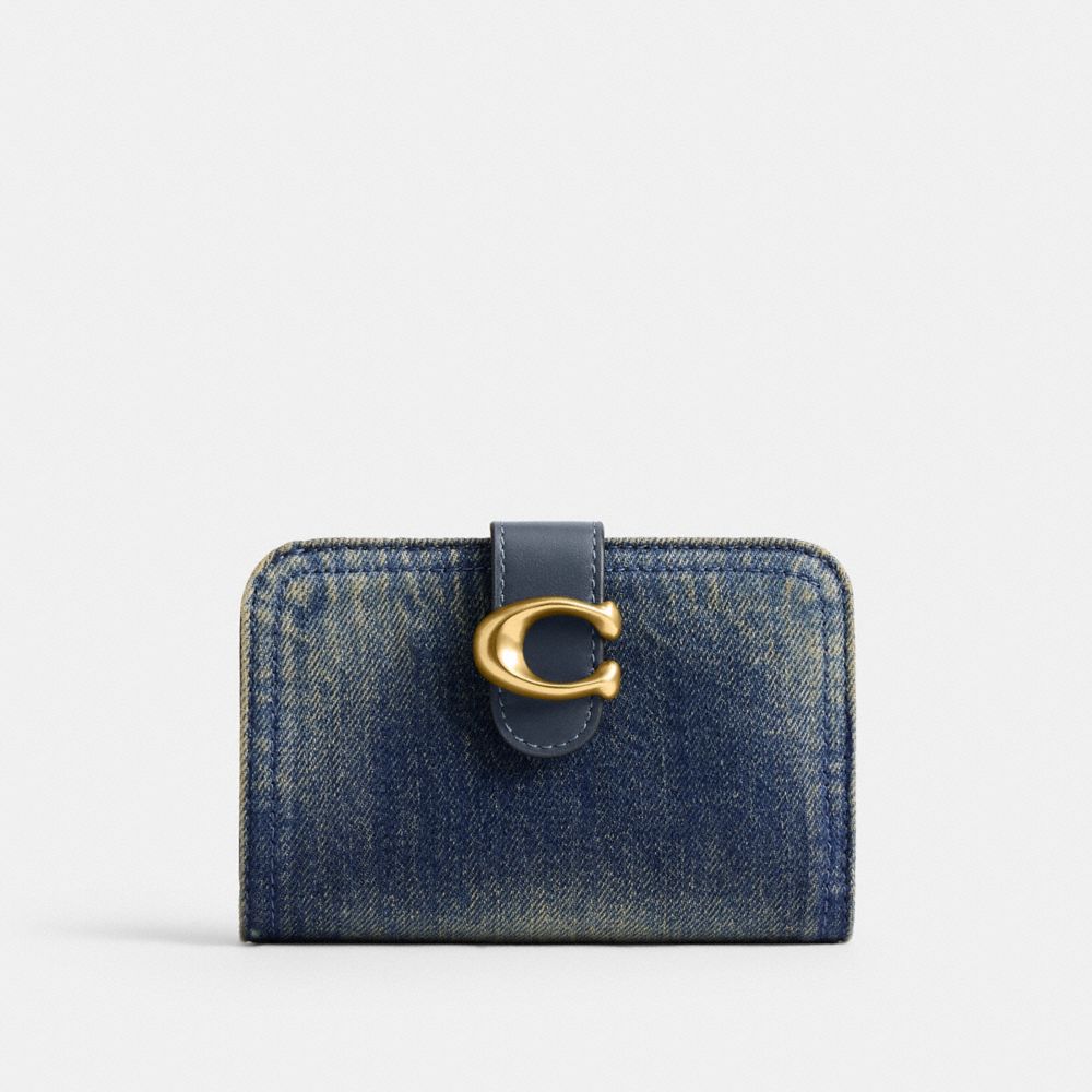 COACH®,タビー ウォレット・ラブド デニム,ブラス/ダーク インディゴ